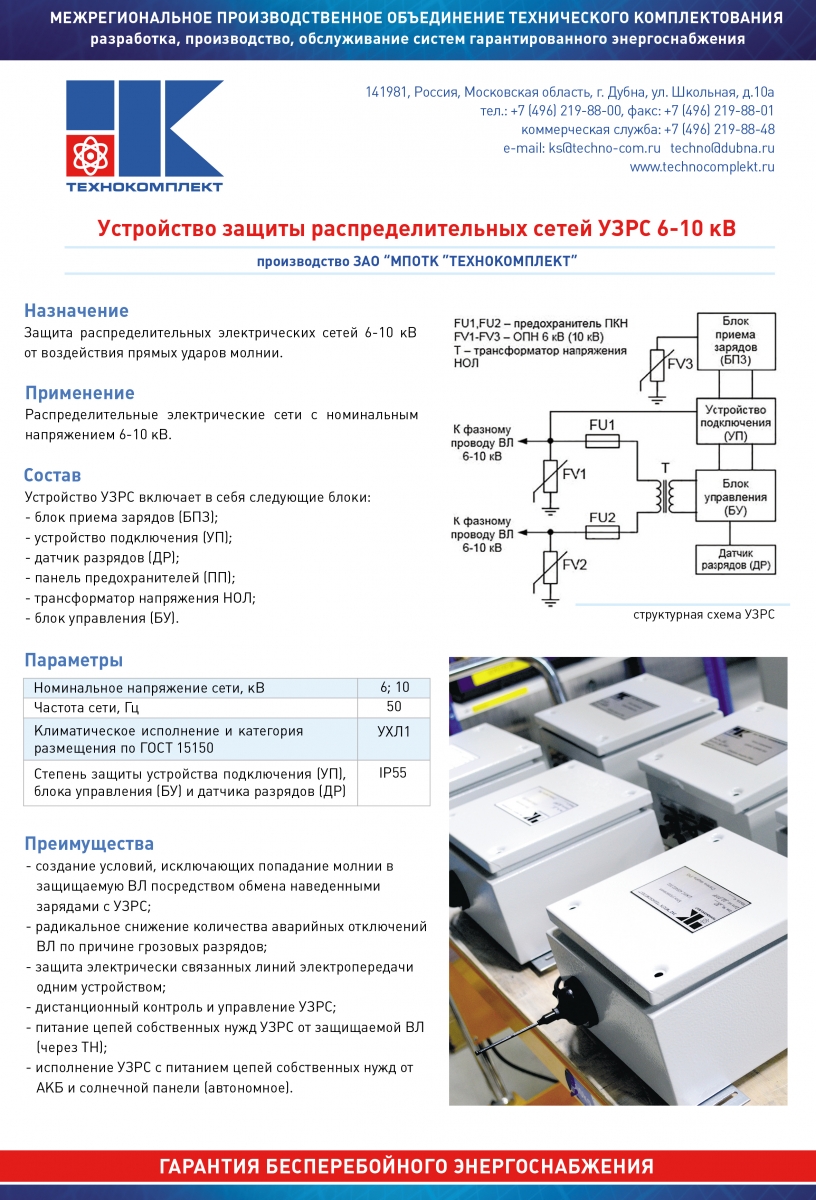 По результатам опытно-промышленных испытаний (ОПИ) на объектах в реальных условиях эксплуатации, ЗАО «МПОТК «ТЕХНОКОМПЛЕКТ» запустило в серийное производство стандартные устройства защиты распределения сетей 6-10 кВ (УЗРС «Дубна») от прямых ударов молнии.